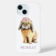 Watercolor Floral Conejo Conejo Conejo Nombra Personalizada iPhone 15 Fundas. Este bonito diseño incluye una pintura acuarela de un conejo con una corona de flores con tu nombre personalizado debajo. Personalice editando el texto en el cuadro de texto proporcionado. Diseñado por Evco Holidays www.zazzle.com/store/evcoholidays