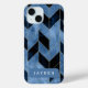 Este estuche de teléfono presenta un fondo moderno de arenque azul marino y dorado con una caja de nombres personalizada. Tan lindo y simple para tu mujer clásica y elegante.