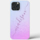 El estuche de teléfono con nombre personalizado irlandés Girly Pink Shimmer cuenta con un moderno patrón de brillantes iridiscente rosa y azul con su nombre personalizado en el centro. Diseñado por ©Evco Studio www.zazzle.com/store/evcostudio