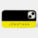 Vibrante funda protector de dos tonos negro y amarillo para iPhone 12 con un nombre personalizado.