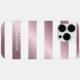Cree un estuche moderno y personalizado de rosa de oro y teléfono blanco con rayas anchas. La plantilla de texto facilita el escribir su nombre.