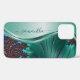 Funda De Case-Mate Para iPhone Nombre Verde azulado moderno fractal manuscrito