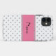 Diamantes blancos (diamantes no reales): el patrón de los puntos de polka con una franja rosa personalizada con su nombre regalos o regalos de monograma o sus iniciales Ideal para bodas novios y novios, duchas de boda, duchas de compromiso, fiesta de compromiso, aniversario, salven la fecha, fiesta de soltera, cumpleaños y mucho más con una elegante y tradicional carta de fantasía