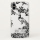 pavo real negro y blanco, flores de cerezo y nombre funda Art Nouveau iPhone X.