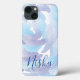Lluvia Nubes acuarela Funda iPhone 13 personalizado. Patrón de nubes de lluvia abstractas de color agua. Personaliza con tu nombre.