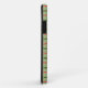 Este estuche de teléfono tiene un diseño Boho de olas verdes y naranjas en un campo de verde claro.
