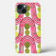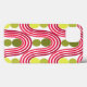Este estuche de teléfono tiene un diseño moderno de mediados de siglo de ondas de arándanos y círculos verdes.