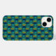 Este estuche de teléfono tiene un diseño moderno de óvalos en verde azulado de semicírculos en verde y marina dentro de ellos en un campo de turquesa.