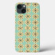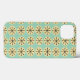 Este estuche de teléfono tiene un diseño moderno de ovalos de crema y estallidos negros en un campo de verde marino.