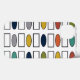 Este estuche de teléfono tiene un diseño moderno de mediados de siglo de repeticiones de rectángulos y óvalos en colores retro.