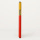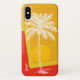 Estuche elegante para iPhone, con gráficos de una palmera sobre un fondo abstracto del amanecer naranja y amarillo. Personalice el texto personalizado por usted mismo o como una gran idea de regalo.