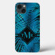 Las frondas tropicales de palma turquesa sobre negro, este estuche de teléfono - PARA CUALQUIER ESTILO O NÚMERO DE DISPOSITIVO - incluye su monograma en letras de moda. Crea por ti mismo o dámela como regalo. COINCIDIENDO con los artículos de nuestra tienda.