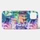 Un fresco collage de palmeras en rosa, morado, verde, verde azulado y turquesa, este estuche de teléfono se acentúa con tu nombre en letras de moda.