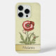 Ilustracion de amapolas rojas en estuche de teléfono personalizable con colores cálidos y cinta dorada sombreada con nombre o monograma.