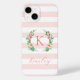 Funda De Case-Mate Para iPhone Paraíso Floral y franjas rosadas Monograma