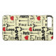 Diseño de texto de París para El día de San Valentín con formas de corazón rojo, Torre Eiffel y lámparas de calle con fondo amarillo