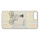 Regalos y accesorios elegantes y modernos, personalizados con un chica elegante que monta una bicicleta con la toalla de Eiffel en el fondo. Adornado con un modelo de lunar multicolor.