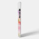 Un delicado ramo de flores de guisantes dulces de tonos pastel florece de un translúcido jarrón de vidrio. Las flores van desde lavanda pálida y azul a suaves rosados y cremas, creando una armoniosa mezcla de colores. Los tallos verdes y las cavidades aportan un toque fresco a la decoración. El jarrón está instalado sobre un suave fondo de agua que realza la calidad onírica y etérea del diseño. Personalizar con un nombre o iniciales.