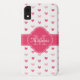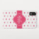 Funda De Case-Mate Para iPhone Patrón cardíaco blanco y rosado con monograma