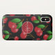 Dulce cerezas iPhone X funda duro con un patrón colorido de cerezas individuales y emparejadas aleatorias con tallos y hojas aún intactas en un fondo negro personalizable - personalizar con su nombre y monograma - de katz_d_zynes