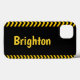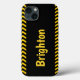 Personalice este estuche para iPhone de signo de precaución con su apellido en el frente. Los colores son fáciles de ver.