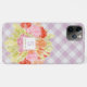 Rosa rosa rosa pastel contemporáneo, naranja de coral rojo, verde claro y color claro rosa pastel de agua floral sobre un fondo de gingham color rosa pastel y blanco. Con espacio para personalizar o personalización con un nombre monograma o inicial de su elección. Hermosa, moderna y fresca cubierta para la moda y amante del arte, amante de las caderas, amante del arte y amante del humor que quiere proteger su teléfono del polvo y la suciedad, el desgaste y el desgaste. Este diseño está disponible en fundas de iPhone 6, 7, 8, 10 o X, XR, XS, 11, 12, 13, 14 Mini, 15 Plus y Pro Max. Muestra tu estilo, te ves de moda y te sientes elegante con un diseño único en un accesorio para equipos móviles de tu elección.