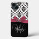 Funda De Case-Mate Para iPhone Patrón de Damasco inicial, rosa y negro personaliz