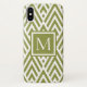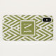Funda iPhone X con diseño de diamante de flecha de moda en verde de tallo de pimienta. Personalice agregando su monograma.