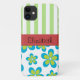 Funda De Case-Mate Para iPhone Patrón De Flores, Rayas Verdes, Su Nombre