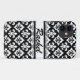Clásico y elegante patrón de flor de lis francés en blanco y negro sobre una hoja de quatrefoil estampado de enrejado marroquí con nombre personalizado. Guay y regalo de moda para los aficionados a Nueva Orleans, Fleur De Lys, Francia, y patrones gráficos geométricos de moda.