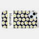 Esta funda para iphone 15 plus es tan linda y femenina. Su patrón floral de margaritas moderno y de moda con margaritas blancas y amarillas de varios tamaños sobre un fondo negro y su nombre en una fuente divertida y de moda irá con todo. ¡Quedará fabuloso en tu teléfono!