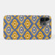Estuche para iPhone psicodélico con un extraño patrón de ojos con colores azul índigo y amarillo panibarro. Este divertido patrón ecléctico peculiar se asemeja al estilo retro moderno de mediados de siglo por sus formas geométricas.