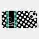 Un patrón de puntos polka en blanco y negro con un lugar para su monograma. Incluye una verde azulada franja verde para un diseño moderno y limpio para cualquier mujer.