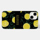 Este diseño de estuches de teléfono con temática estival presenta un patrón de limones amarillos brillantes y hojas verdes sobre un fondo negro. Puede personalizar este elemento con su propio nombre en el centro.