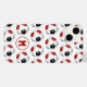 Este divertido estuche para iPhone con temas de fútbol presenta un patrón simple de balones de fútbol que tienen paneles rojos, negros y blancos sobre un fondo blanco personalizable - personalizar con el monograma del atleta - de katz_d_zynes