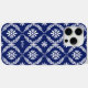 Funda De Case-Mate Para iPhone Patrón floral azul y blanco monogramado elegante