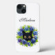 Un lindo gato personalizado con ilustracion de flores de los mosquiteros azules, funda del iPhone 13 con el arco azul. Puede personalizarlo con su nombre o texto.
