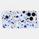 Patrón moderno de textura de piedra terrazo en estuche de teléfono de fondo azul. ¡El regalo perfecto para cualquiera!