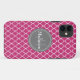 Guay lindo moda trendy trendy rosado caliente y blanco moderno geométrico patrón de entramado marroquí con placa de nombre gris para su personalizado monograma letra inicial y nombre. Gran regalo para niñas que aman los patrones geométricos y los regalos monogramados.