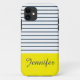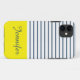 Patrón rayado moderno blanco, azul y amarillo con nombre personalizado