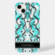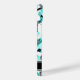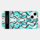 Cubierta de la caja del teléfono con líneas caóticas de tonos turquesa y negro