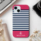 Funda De Case-Mate Para iPhone Pattern Navy blue and white bands Red background