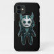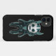 Un alienígena personalizado con cuernos, con un espacio moderno negro y verde azulado. Un pequeño visitante lindo fuera del planeta protegerá tu celular de esos molestos invasores extraterrestres.
