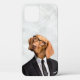 Ilustracion de un perro con traje y gafas con textura de piedra de mármol blanco
