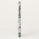 Perro hipster blanco y marrón en gafas con patrón floral pastel y estuche de teléfono monograma clásico.