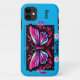 Personalizable mariposa brillante Funda iPhone 11. Añade un toque de color y capricho a tu vida con nuestro estuche de teléfono de mariposa azul y rosa con un diseño vibrante de mariposa estilo tatuaje en rosa cálido, lavanda y negro sobre un fondo turquesa, lo que lo convierte en una adición versátil y llamativa a tu día.