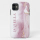 Este elegante patrón de acuarela rosa y blanco con un diseño purpurina de imitación dorado se ve impresionante en este funda para iPhone 11, listo para que usted lo personalize con su nombre. Este elegante estuche de teléfono también sería un gran regalo para un amigo o un ser querido.