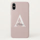Hermoso y sutil polvo Estuche para teléfono rosa con tipografía clásica en blanco y gris para su Monograma personalizado y nombre personal. Gran regalo para la universidad, la escuela, la oficina, el boda, el cumpleaños, los Navidades. Un estuche de teléfono monogramado personal para un profesor, esposa, novia, compañero de trabajo, colega, amigo, mamá, hermana, tía, abuela. Un bonito diseño moderno y sutil que combina con la modernidad minimalista, la moda femenina, romántica y la moda vintage. Una pieza fresca para la próxima primavera.