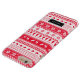 La gente nórdica del invierno rojo dulce inspiró el modelo con un tacto del punto de la isla. Corazones rojos en estilo retro. Árboles y machos de pino. Copos de nieve y flores. Personalícelo con su nombre o texto.