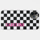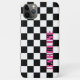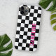 Fun funky blanco y negro, y banderas de carreras de color rosa caliente comprobar el diseño del patrón. Con espacio para personalizar o personalizar con el nombre de su elección en colores claros en blanco y negro. Diseño diverso, elegante, elegante y ecléctico para la elegante moda artística, la diva artística de la moda, el popular hilo de moda, el estilo retro del arte vintage y el amante abstracto del motivo geométrico digital que quiere proteger su teléfono del polvo y la suciedad, el desgaste y el desgaste. Este diseño está disponible para fundas de teléfono móvil Apple iPhone 6, 7 y 8 Plus, 10 o X, XR, XS, 11, 12, 13 Mini, 14, 15 Plus y Pro Max. Muestra tu estilo, te ves de moda y te sientes elegante con un diseño único en un accesorio para equipos móviles de tu elección.